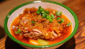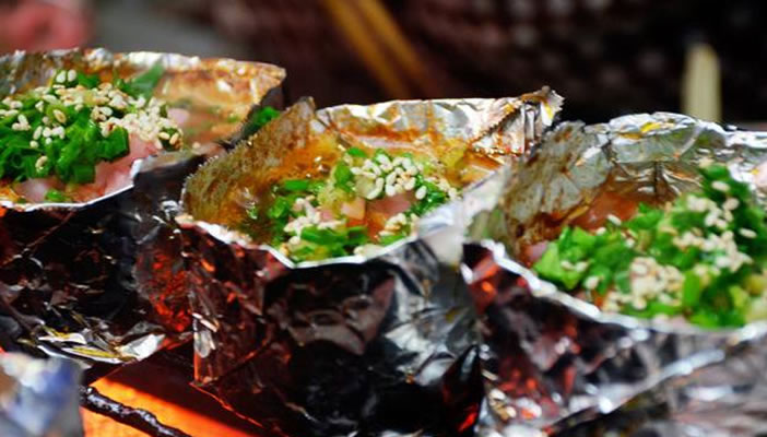 烤脑花是川渝地区传统特色小吃,用猪脑子拌之以海椒末、花椒粉及其他佐料烤制而成。气味醇厚,入口绵软,香而不腻,油而不肥。